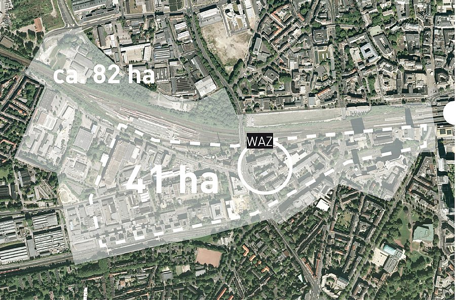 Die Stadt Essen hat von der Bergbau- (bis Ende 1986 mit der Schließung der Zeche Zollverein) und Rüstungsstadt (hier produzierten die Krupp- Werke unter anderem die „Dicke Berta“), über die Kriegszerstörungen und die Umformung zur autogerechten Stadt nach dem Krieg, über die Entwicklung zur „Kultur- und Wissensmetropole“ als Teil der Kulturhauptstadt 2010 (RUHR.2010) und zur „Grünen Hauptstadt Europas“ im Jahr 2017 vielschichtige Veränderungen erfahren. Diese Veränderungen haben sich auch im Stadtgefüge manifestiert und werden in Bereichen, wie dem für uns maßgeblichen Wettbewerbsgebiet im Zentrum der Stadt, erkennbar. In den vergangenen Jahrzehnten der Nachkriegsmoderne wurden viele Innenstädte zu Einzelhandels- und Dienstleistungszentren konsequent ausgebaut. Ob Fußgängerzonen, Passagen, Einkaufzentren, Bahnstädte, Medienquartiere oder Bürocities – in immer kürzeren Abständen wurden neue, immobilienwirtschaftliche Produkte entwickelt, die die westeuropäischen Innenstädte prägen. Ihre zentrale Lage und gute Anbindung an den ÖPNV sind nach wie vor wesentliche Standortfaktoren für die Ansiedlung nationaler und internationaler Unternehmen in den Stadtkernen. Doch durch die vielversprechenden Renditen und Dynamik der Märkte ist der Veränderungsdruck hoch: Passt ein Einzelhandels- oder Bürokonzept nicht mehr zur aktuellen Nachfrage, so wird der Standort transformiert, meistens nach dem Prinzip „Abriss-Neubau“. Diese gesellschaftlichen Transformationen und deren bauliche Auswirkungen sind also die grundlegende Kondition von Städten, die keine statischen Zustände, sondern immer dynamische Systeme sind. Kontinuierliche Veränderung, Editierung und Überschreibung als Reaktion auf sich wandelnde politische, gesellschaftliche, ökonomische, aber auch ästhetische Leitbilder machen Städte zu heterogenen Konstruktionen mit ebenso unterschiedlichen Qualitäten. Vor allem die hierbei entstehenden Brüche, Diskontinuitäten oder Kollisionen können immer wieder zu besonderen Potentialen für die Stadt und ihre Bewohner weitergedacht und entwickelt werden. So auch bei diesem Projekt, in dem wir uns im anstehenden Sommersemester intensiv mit der Transformation eines zentrumsnahen Standortes auseinandersetzen wollen: der Essener Süd West Stadt. Unweit des Essener Hauptbahnhofes haben sich auf dem 41 ha großen Areal in den 70er und 80er Jahren Unternehmen aus den Medienbranchen angesiedelt, ohne dass der Standort als „Medienquartier“ jemals vermarktet worden ist. Heute wird an vielen Stellen offensichtlich, dass der Ort in die Jahre gekommen ist und aktuellen Anforderungen der ansässigen Unternehmen nicht mehr gerecht wird: Große Unternehmen wie die Funkemedien-Gruppe wandern ab, der Gebäudebestand ist erneuerungsbedürftig und teilweise von Leerständen geprägt, der Nutzungsmix passt nicht mehr zu den Potenzialen des Standortes, auch die öffentlichen Räume sind stark vernachlässigt. Der ausgeschriebene studentische Wettbewerb hat zum Ziel, durch die schrittweise, städtebauliche Transformation und neue hochbauliche Impulse ein tragfähiges Gesamtbild für die „Essener Süd West Stadt“ zu finden. Es werden zukunftsweisende Ideen für eine langfristige Um- und Neugestaltung des Areals gesucht, die die Attraktivität des Standorts erhöhen und ihn als eigenständigen und essentiellen Bestandteils Essens zu entwickeln vermögen. Gefragt ist eine Vision, die zeitgenössische Fragen der Entwicklung zentraler Innenstadtstandorte thematisiert und in ein stadträumlich und programmatisch überzeugendes Konzept übersetzt.